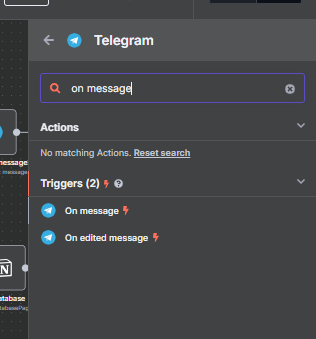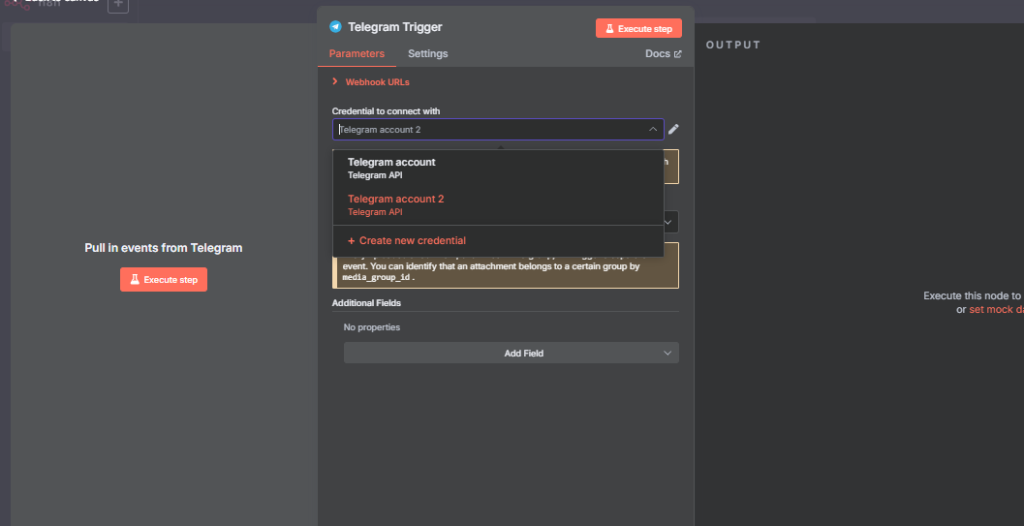 Langkah 2: Siapkan node Telegram N8N kamu, dan Trigger on message