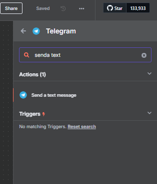 Langkah 6 : Buat node Telegram dengan trigger send a text messsage